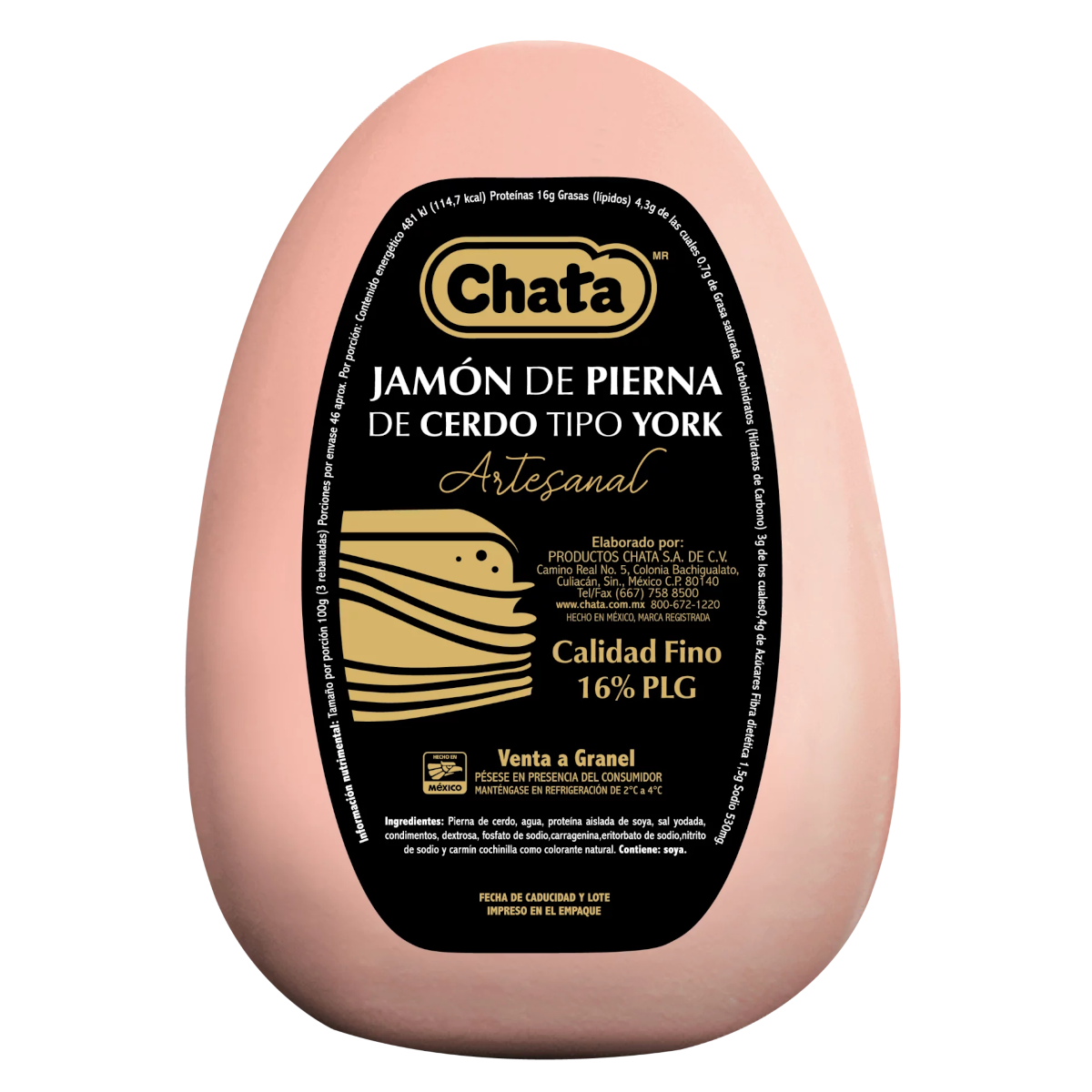 Descubre el jamón artesanal tipo pera de Chata, una delicia que elevará tus platillos a un nuevo nivel. Con calidad premium y un sabor auténtico e inigualable, este jamón es el complemento perfecto para tus creaciones culinarias.