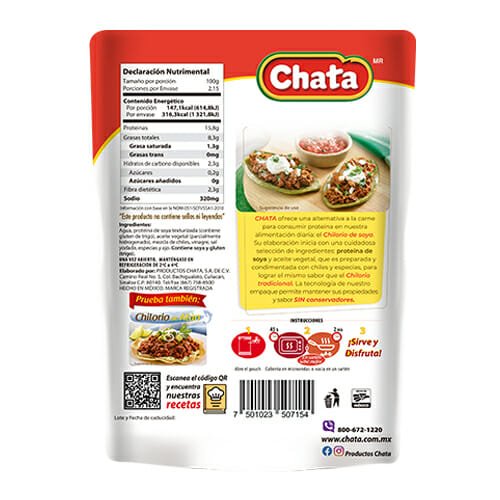 Sumérgete en una experiencia culinaria llena de tradición y sabor con nuestro Chilorio de Soya. Diseñado pensando en aquellos que buscan alternativas saludables y deliciosas, este producto te sorprenderá con su auténtico sabor y suave textura. ¡Disfruta de todo el gusto del chilorio sin sacrificar tus preferencias!