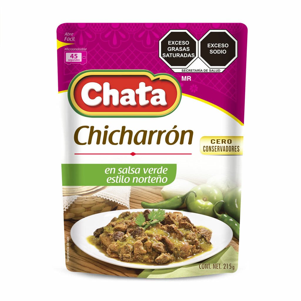 Corta los tamales de elote en cubos. Unta con mantequilla un molde refractario, acomoda en el fondo del molde una capa de elote cortado, cubre con una porción abundante de Chicharrón en Salsa Verde Chata, repite la operación y sobre el chicharrón espolvorea el queso manchego rallado.